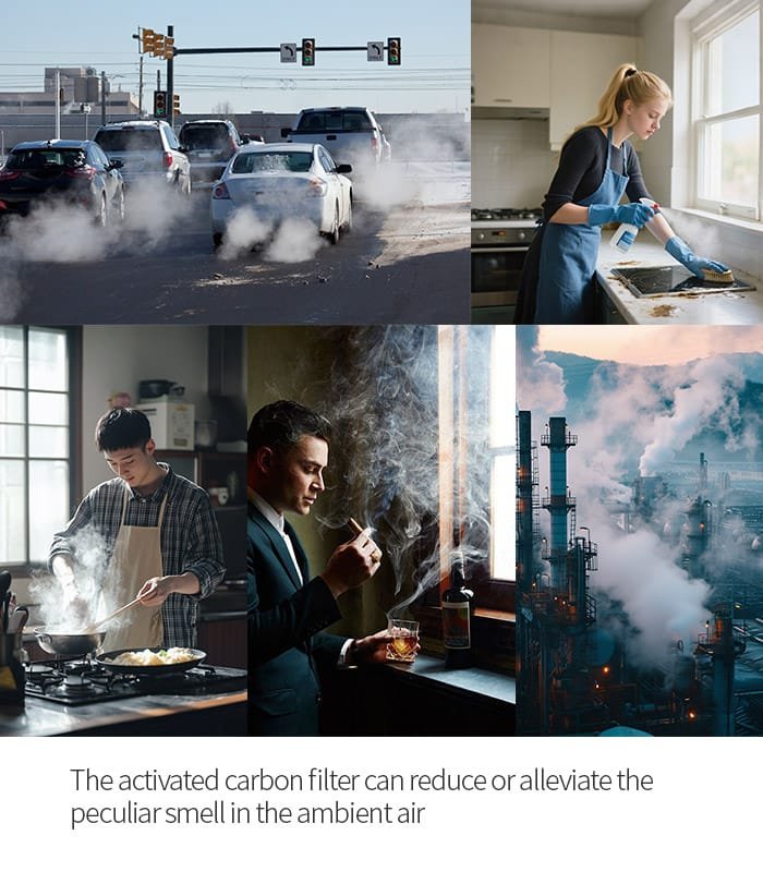 活性炭过滤器可以减少或缓解周围空气中的异味。
