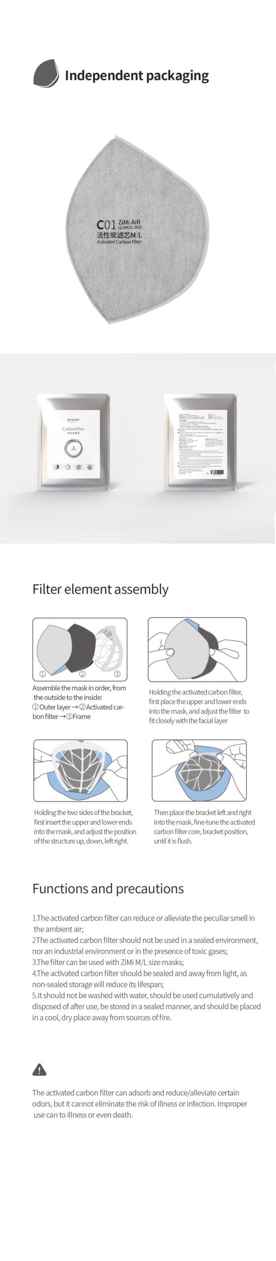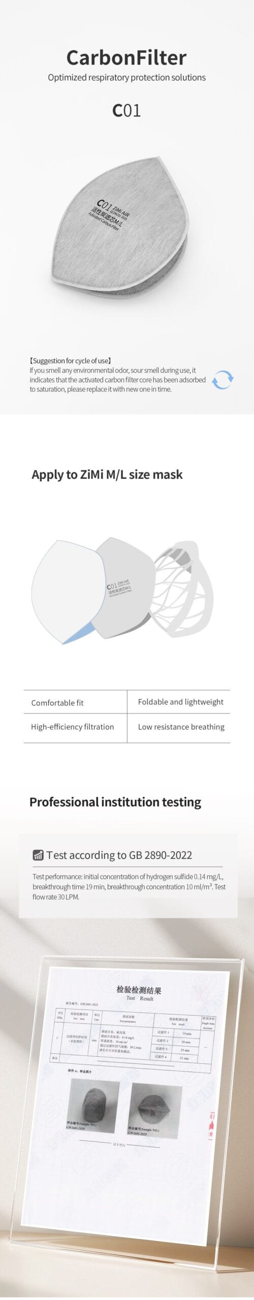 该产品是活性炭滤芯,适用于Zimi的M/L尺寸口罩。